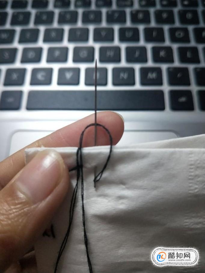 将针从上往下还是从下往上穿都是可以的,然后将剩下的线绕在针尖上
