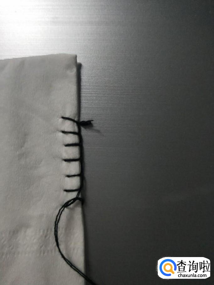 将针从绕的线圈中拉出来,我们一针就缝好了,然后不断重复,最后效果是这样的。