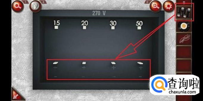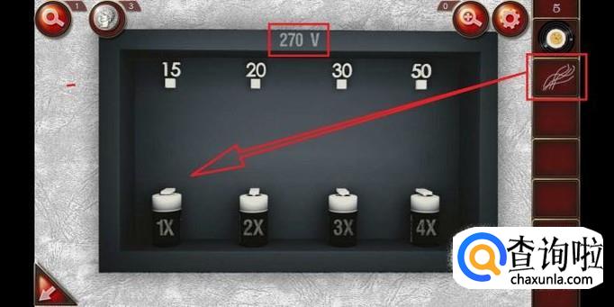 回到房间,再次点击墙壁上的暗盒,将电池放入暗盒中,如图所示