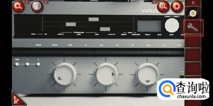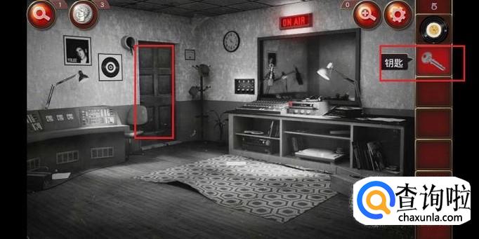根据唱片的提示,将录音机的按钮调成相同的方位,获得钥匙如图所示