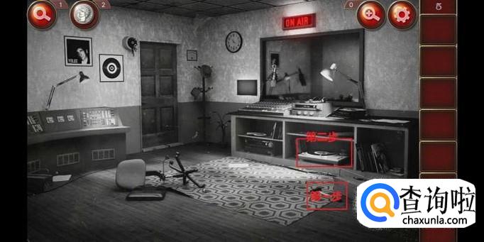 点击录音机,同时点击唱片进行查看获得调整录音机按钮的提示,如图所示