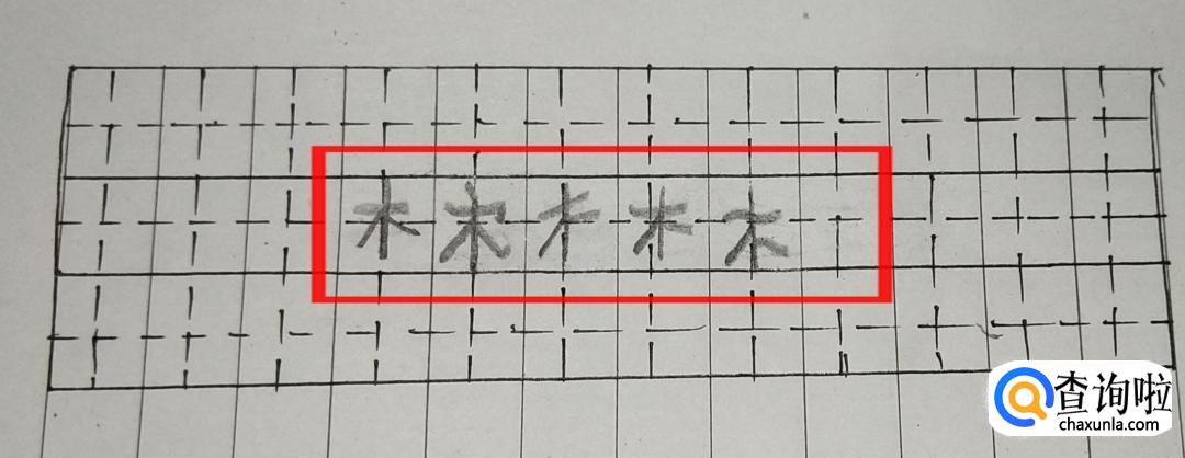 写这个“木”要竖、撇、捺的书写节奏和韵味。注意笔画之间的距离。