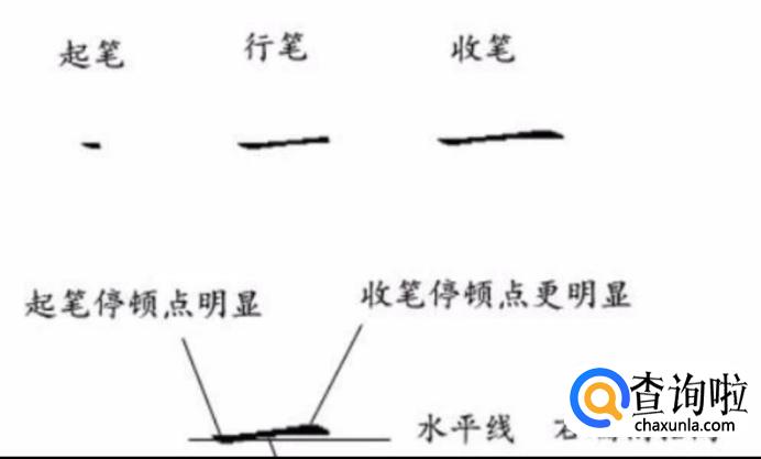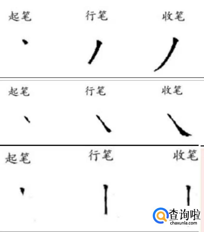 写法是:起笔轻停顿但不明显,略微往右上行笔,且稍微往上弯曲呈弧线状,力度稍微加重,收笔时需要稍微停顿,有回锋的动作更好。