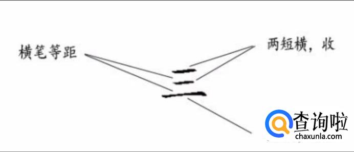 一共三横,每一横要把握长度。合理安排三横之间的距离。