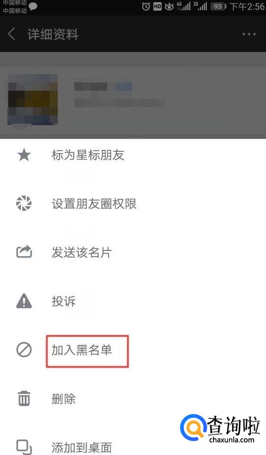 弹出的界面,我们点击加入黑名单,这样我们就将此人拉入黑名单了。还是比较简单的,相信大家现在都会了。