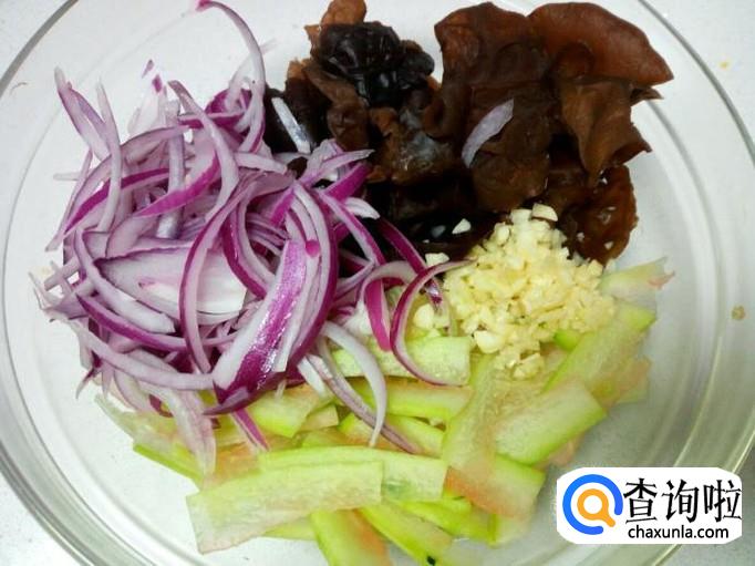 西瓜皮 3块(200克),木耳 适量 ,圆葱 半个,香菜 适量。