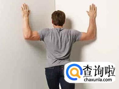 两臂翻握挺胸腰练习——背对墙在墙边站立,两臂内旋,举起翻握杠,然后尽力抬头挺胸,同时内收两臂。保持6到8秒再还原,并重复练习。