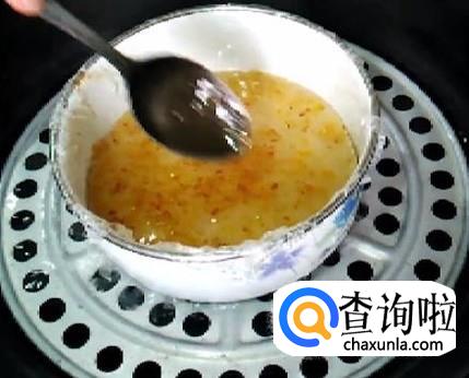 打开锅盖,在面上涂一层糖桂花,然后再蒸大约5分钟