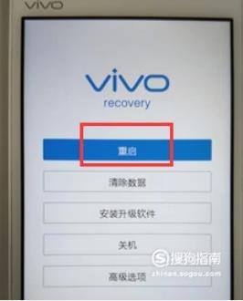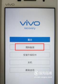 先把vivo手机关机,然后同时按住“电源键”和“音量上键”就可以进入手机“recovery模式”,然后点击“清除数据”,如下图。
