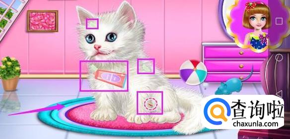 小猫身上有很多脏东西,我们要放置在桶里面,如图。
