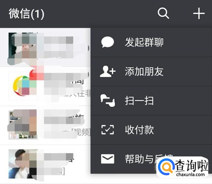 点击加号按钮以后可以打开隐藏的功能栏,然后点击打开扫一扫。