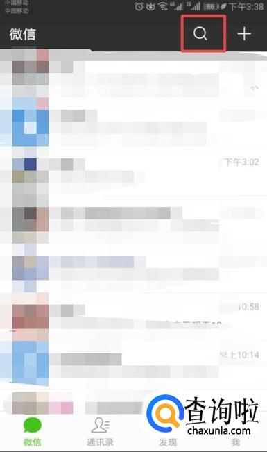 首先,我们打开我们的手机,然后我们打开微信,之后我们点击右上角的搜索按钮;