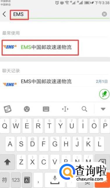 弹出的界面,我们输入EMS,之后我们点击下方的EMS中国邮政速递物流;