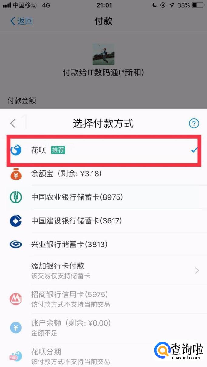 接着点击花呗。