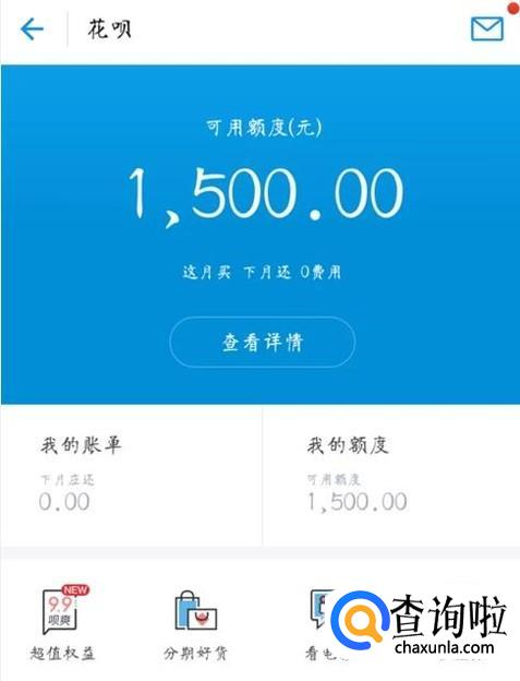 在花呗的页面,你会发现最上方是花呗的可用额度,可以点击查看详情。