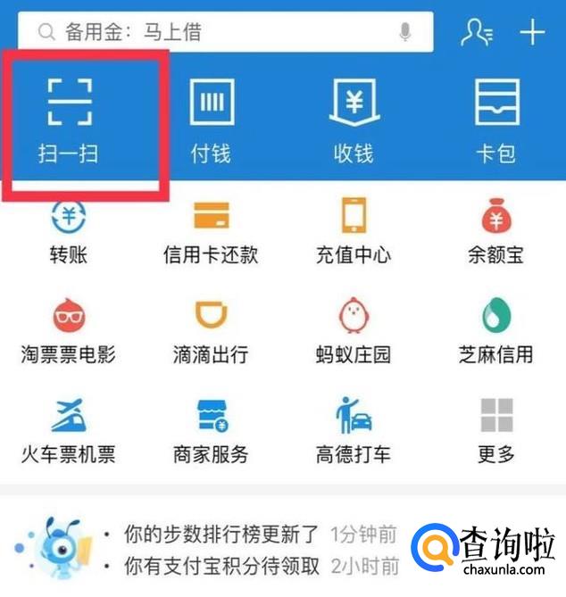 首先点击支付宝中的扫一扫。