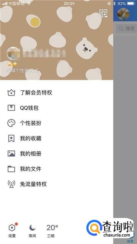 首先点击手机QQ左上方的个人头像,如下图所示。
