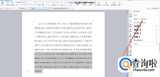 点击样式和格式后,WPS右侧会出现新的一栏。点击清除格式就能清除掉和原文字格式不符的文字了。下面第二个图就是清除格式后的。