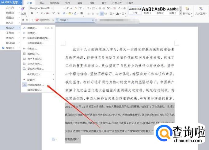 点击左上角开始,找到格式选项。