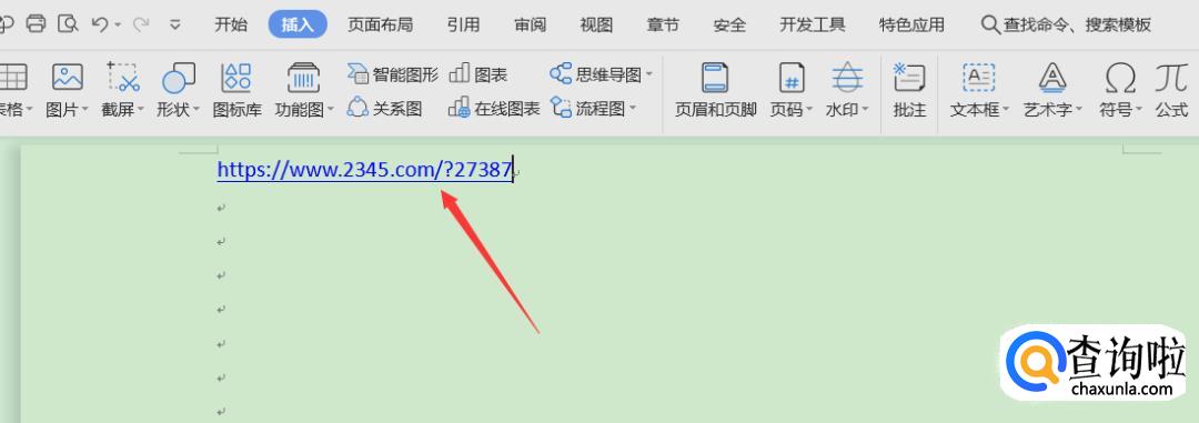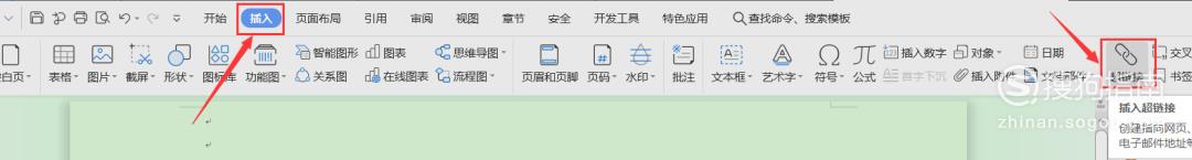 打开文档,在界面左上角点击插入,然后找到超链接,点击超链接。