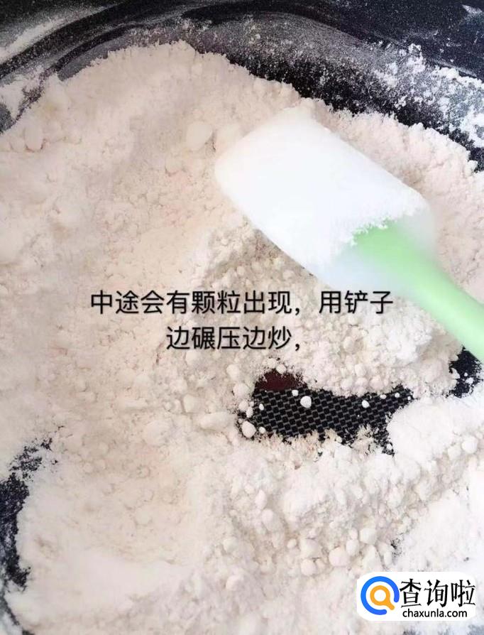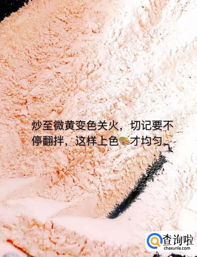 然后炒到面粉变成微黄色就可以关火了,如下图所示。