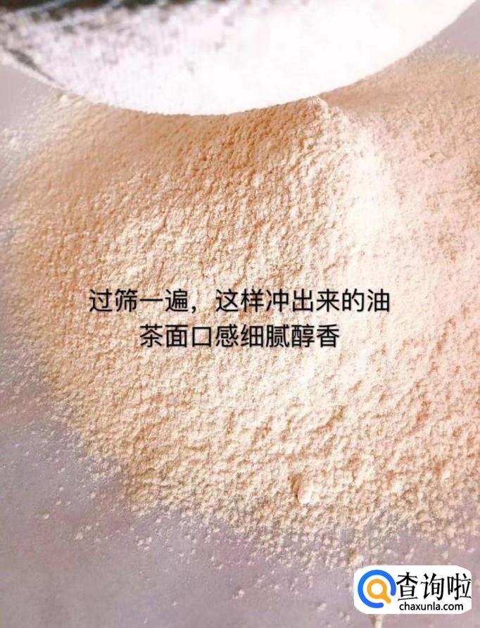 接着把炒好的面粉过筛筛一遍,如下图所示。小贴士:筛过的油茶面,冲泡起来口感才会更加细腻醇香。