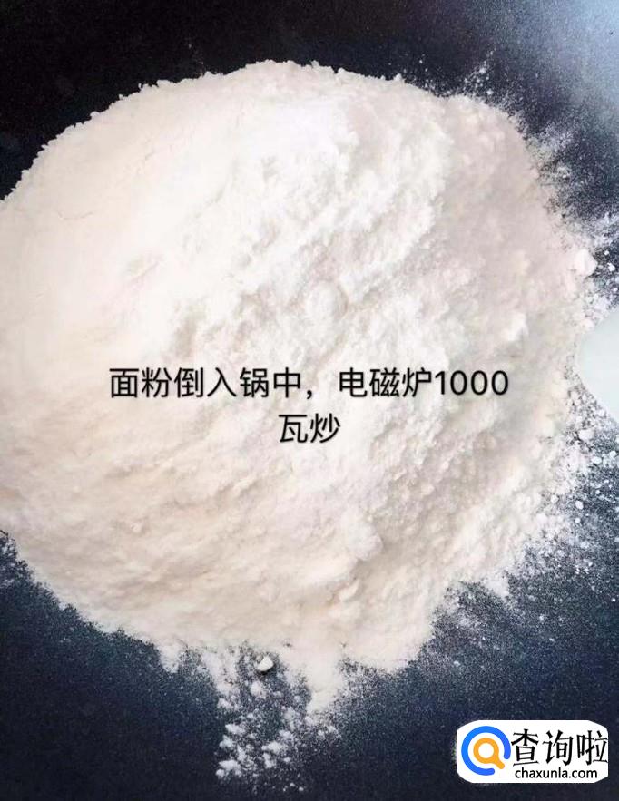 首先将面粉倒入锅中,电磁炉开1000瓦翻炒,如下图所示。