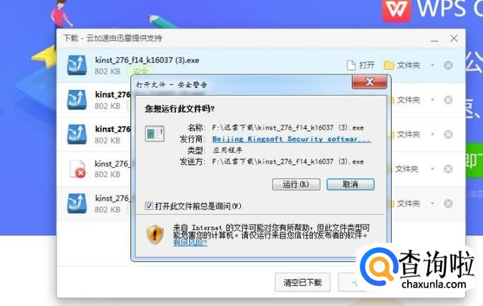 下载完成后,点击打开,如下图。再进行运行——金山毒霸在线安装——安装office2016