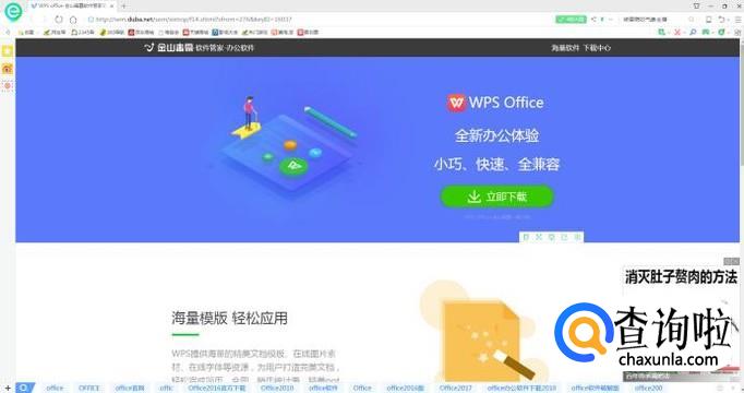 点击进入,会看到搜索后的列表,选择如下图箭头所指的那个软件指引下载。点进进入,会以浏览器的方式打开,如图示,是WPS Office2016下载界面,点击立即下载。(如果有弹窗提醒,点击忽略提醒)