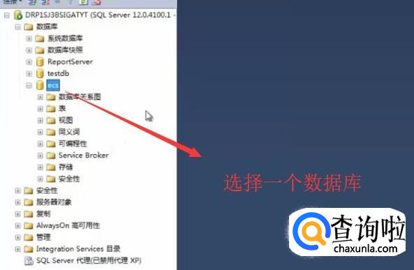 首先我们打开SQL Server Managment管理软件,选择一个数据库,如下图所示