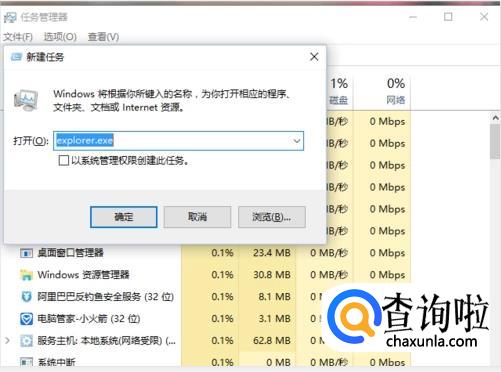 如果没有需要进行新建任务来查找,然后手动下载explorer。