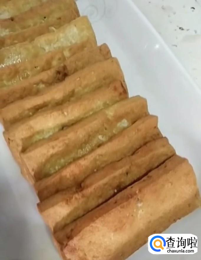接着我们锅中烧油,油温七成热下入豆腐,炸熟捞出备用