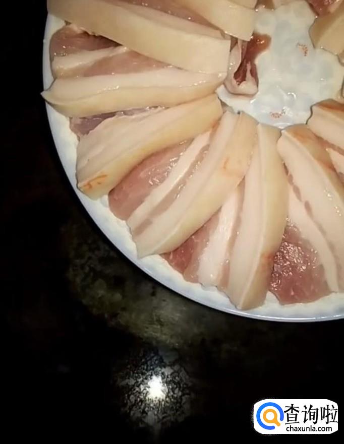然后我们将五花肉放入冷水锅中,煮出血沫,捞出清洗干净备用
