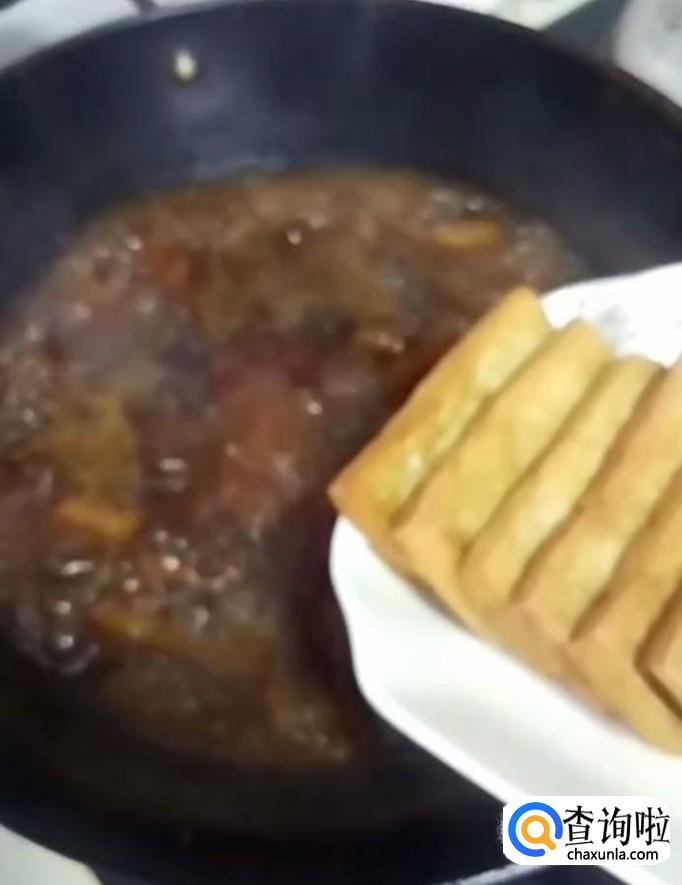 五花肉,豆腐,葱姜,白糖,蒜,花椒,大料,桂皮,香叶,料酒,老抽,盐,高汤,鸡精