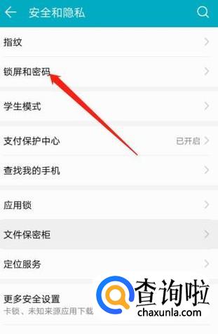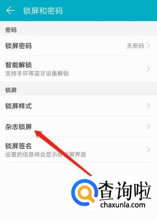 在“安全与隐私”界面中,点击“锁屏和密码”,再点击“杂志锁屏”。