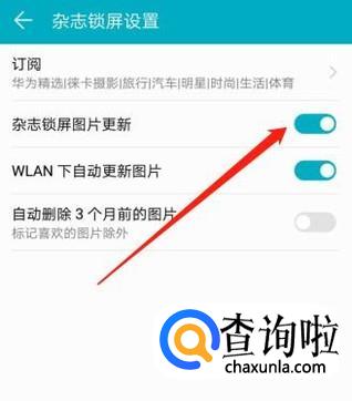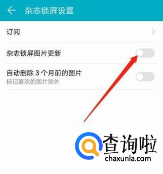 在“杂志锁屏设置”中,将“杂志锁屏图片更新”关闭,就可以关闭杂志锁屏了。