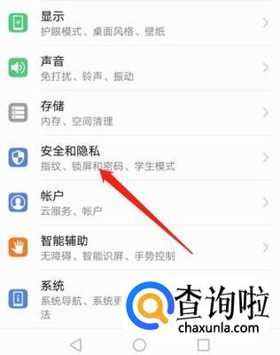 进入“设置”界面后,点击“安全与隐私”。