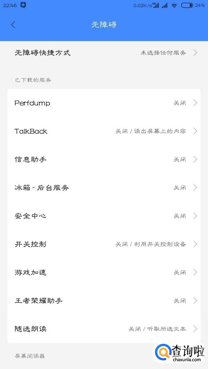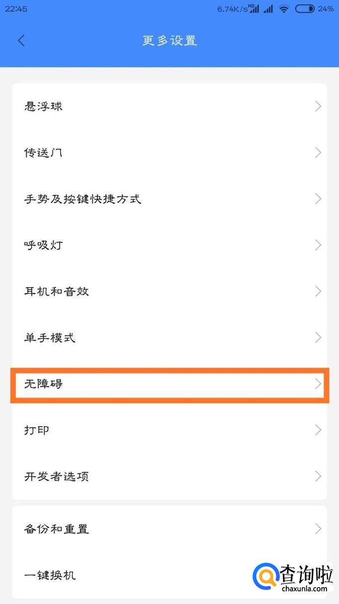 找到"无障碍"选项,在这里可以打开很多无障碍服务,即软件自动操控手机的服务。