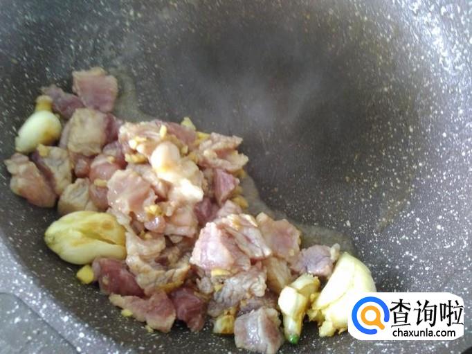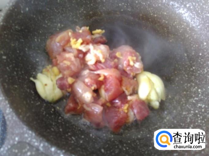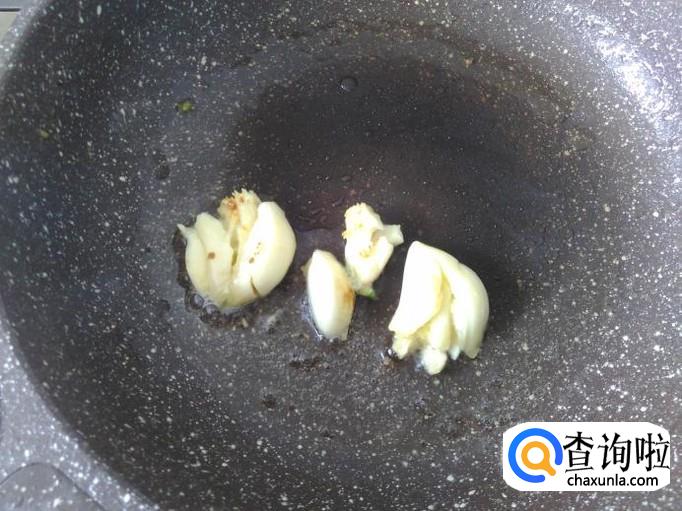 开火下油,放蒜米进去爆香。