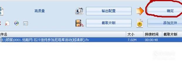 可以看到添加进去的视频文件,在下面设置好输出路径,就点右上角的“确定”。