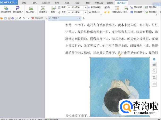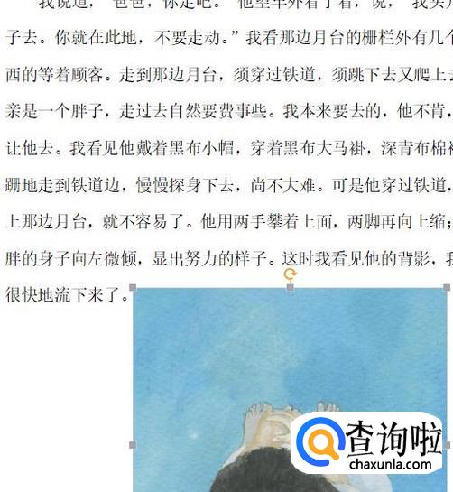 这时图片就会出现在文档中,但不能随意移动,需要调节它的环绕模式。