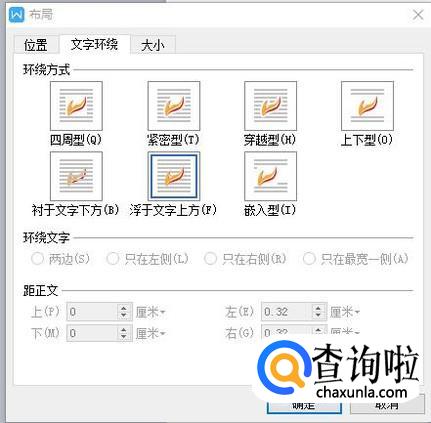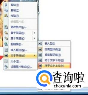 接下来,用鼠标右键单击已经插入的图片,选择“文字环绕”中的“浮于文字上方”即可。