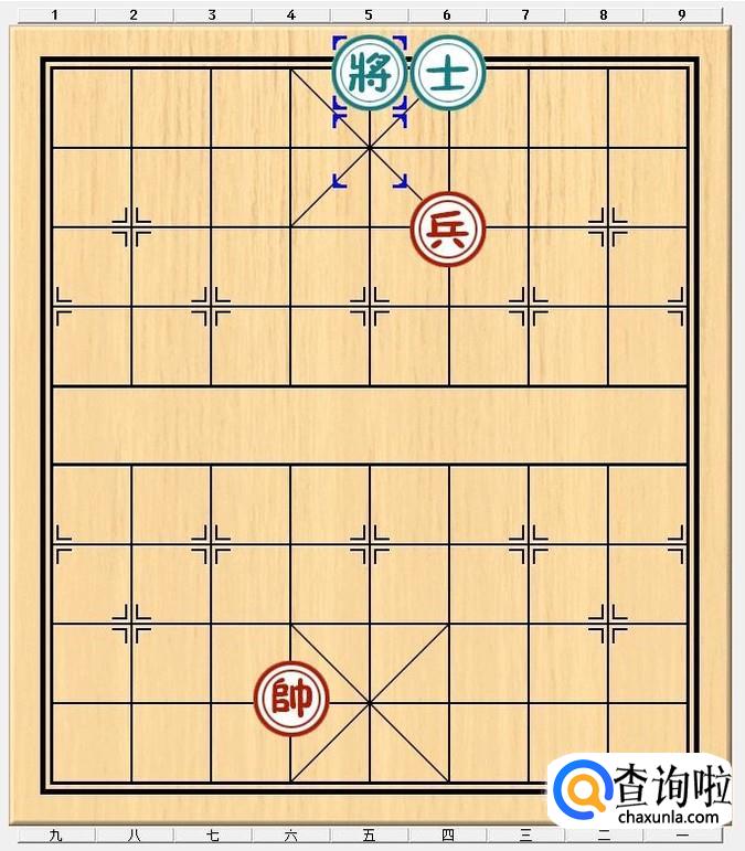 红方兵四平五,吃掉黑方的士,将黑方将困死,红方胜利。