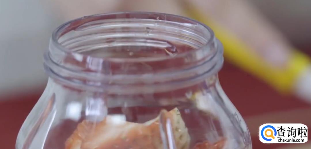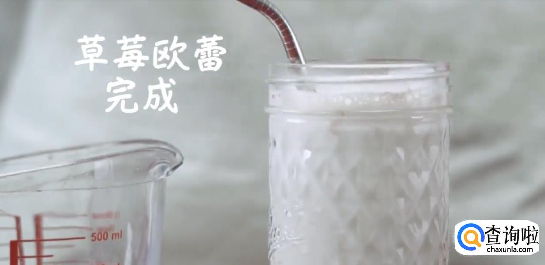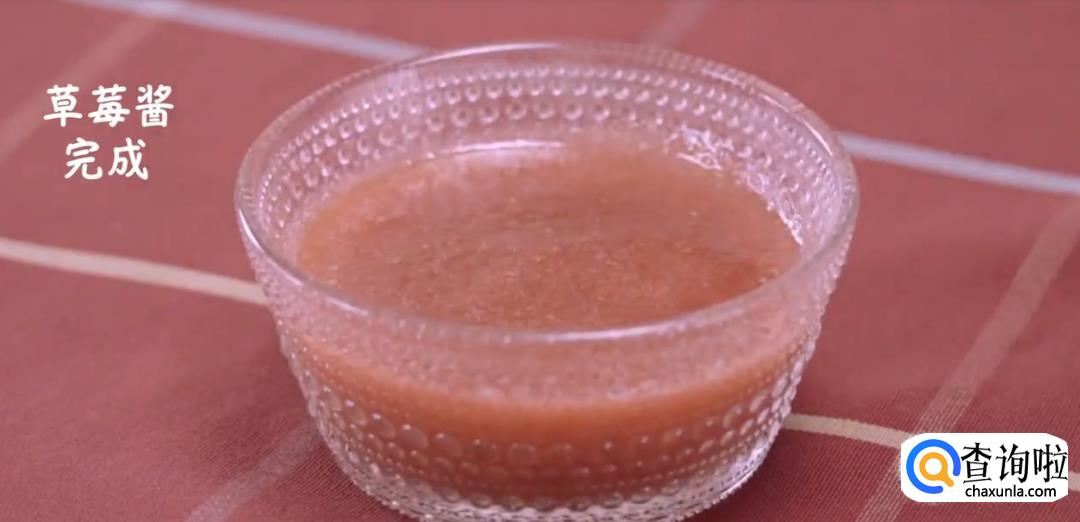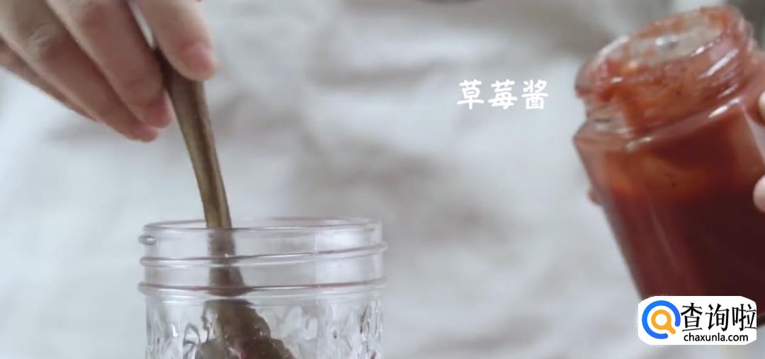 将草莓酱铺在杯底,然后倒入草莓慕斯,一杯草莓欧蕾就完成了。