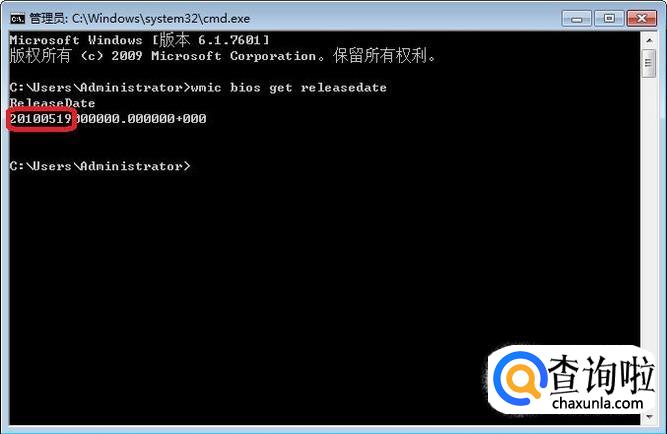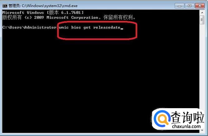 就打开了windows的命令提示符,输入“WMIC BIOS get releasedate”(查看本机BIOS版本),点击回车键。