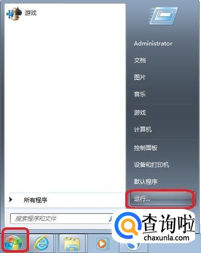 首先,点击开始菜单,点击“运行”。