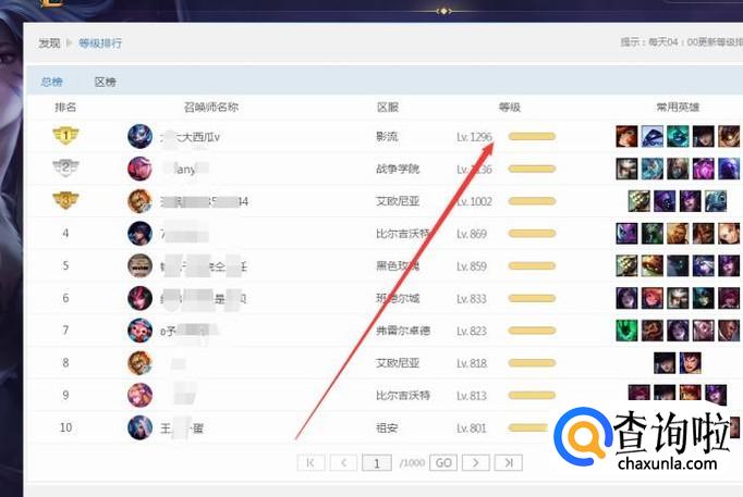 登录之后你会发现有一个等级排行,然后点击进入,如下图。