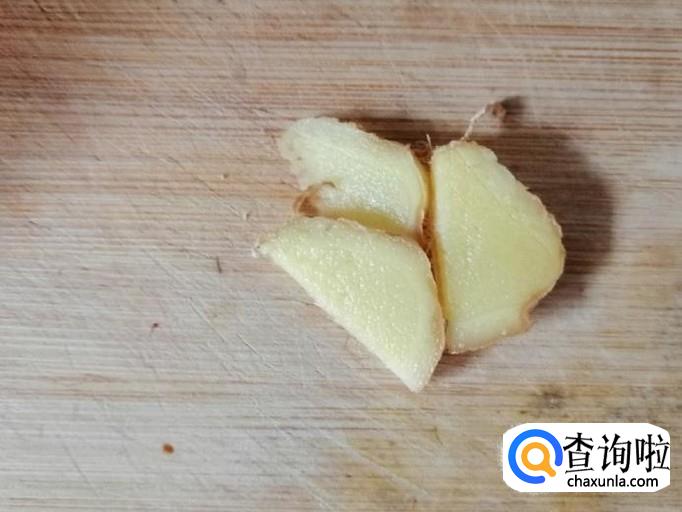 取适量新鲜的生姜,用清水把姜洗净,然后把姜切成如下图大小的姜片,然后再把姜片切成姜丝待用。