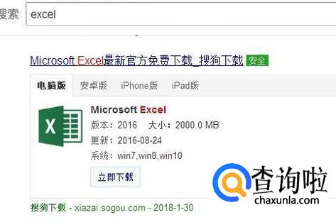 在弹出的页面里找到excel下方的立即下载图标,点击下载安装即可