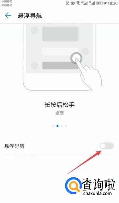 弹出的界面,将悬浮导航的开关向左滑动;